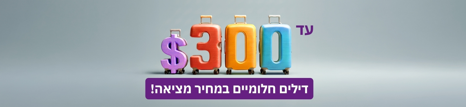 כאן תוכלו למצוא מגוון של חבילות זולות לחו"ל במחירים של עד 300 דולר, תשמחו לגלות שישנן אפשרויות רבות לדילים ביעדים שונים בתקציב הזה, זהו העמוד המושלם למחפשים לסגור דיל בתקציב נמוך, במיוחד אם אתם גמישים עם התאריכים שלכם. במידה ולא מצאתם את היעד או התאריך המתאים לכם כאן, השתמשו במנוע חיפוש חבילות הנופש שלנו כדי למצוא חופשה בתאריכים המדוייקים לכם.