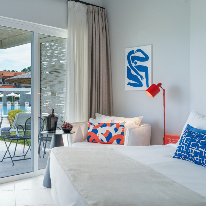 המלון מעוצב בסגנון מודרני ושיקי המשתלב בהרמוניה עם חוף הים הצלול, כאשר מרכז העניינים הוא ה-Beach Club האנרגטי המארח די-ג'ייז ויוצר פסקול קיצי מושלם תחת השמש היוונית. החדרים והסוויטות מציעים פינוק מקסימלי עם דגש על פרטיות, ורבים מהם כוללים בריכות פרטיות או מרפסות רחבות הצופות אל הכחול האינסופי של הים האגאי.
